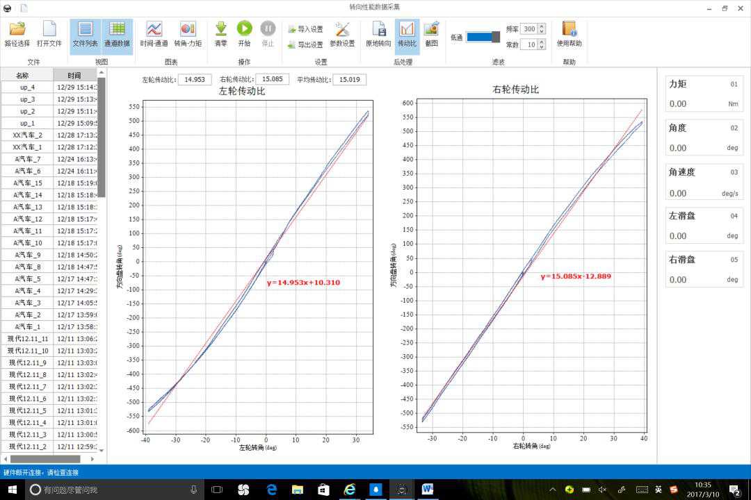 耐創測試的轉向性能測試設備:可以適用于乘用車或商用車,測試汽車方向盤動態或靜態狀態下的力矩和轉角,角速度,同時可擴展乘用車或商用車的數字車輪滑盤,同滑盤電子信號集成,大幅度提高了轉向傳動比試驗效率,從而進行力矩波動, 轉向剛度、干摩擦、轉向行程、最大轉向力,轉彎半徑,車輪最大轉向角等各性能測試。該設備既可以通過計算機作為獨立的測試系統,用來測試轉向系統性能,也可以集成到其他數據采集儀,用來測試整車性能。